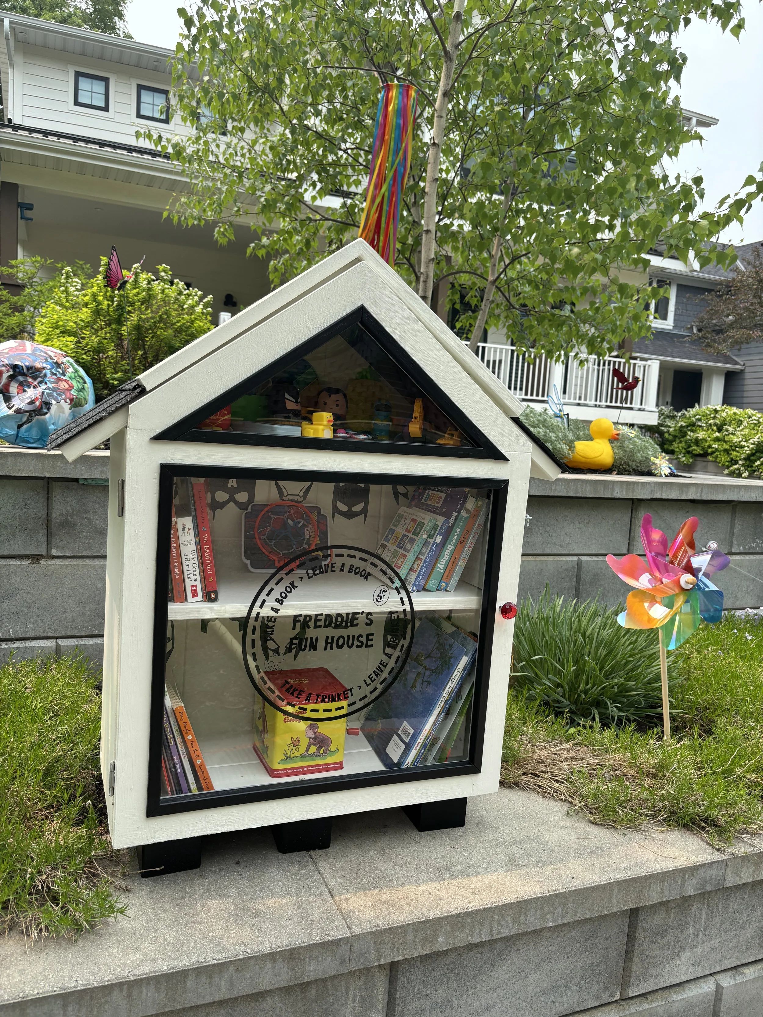 Just around the corner at 40th & Vincent Ave S in Minneapolis, Freddie’s Fun House invites you to explore, share, and connect. Stocked with books and trinkets, you’ll find many small treasures. It’s a little library full of surprises—ones Freddie loved to find. Feel free to drop by, pick up a story, leave behind a surprise, or simply soak in the joy of a community space built with love.