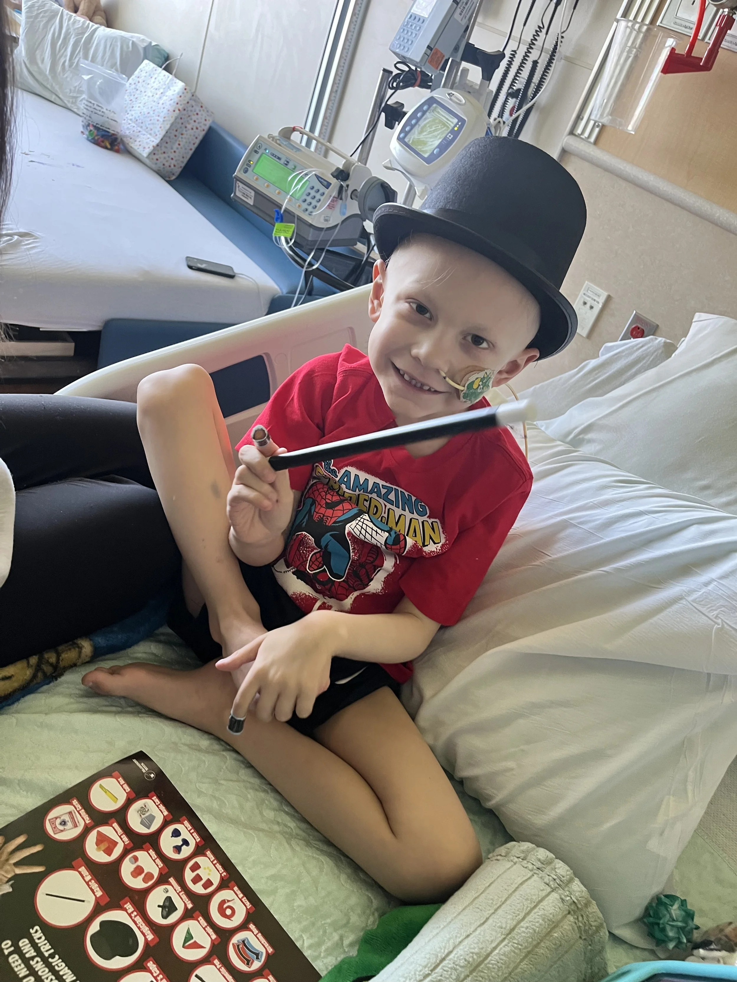 In early November 2023, Freddie experienced mild and infrequent stomach pain which escalated over the following weeks, ultimately resulting in a referral to Children's Hospital. An ultrasound was performed, at the time looking for signs of appendicitis, and upon completion we were given the gut-wrenching news that imaging revealed significant lymphoma throughout his abdomen. A CT scan that day would confirm the lymphoma, and biopsies a day later would specify the type of lymphoma -- a very rare and aggressive Burkitt Lymphoma. While rare and aggressive are not words you want associated with your son's cancer - we also learned that Burkitt Lymphoma is very curable with low reoccurrence rates after remission. While the prognosis was indeed good, the staging of the lymphoma required an extended 8 months of intensive chemotherapy. Freddie’s treatment journey started off rocky as he got a bacterial infection resulting in severe septic shock. After which he was intubated for 3 days in very critical condition. Freddie was able to power through many additional obstacles in the ICU, but after a month he was re-admitted back to oncology at Childrens Hospital to continue this treatment plan.